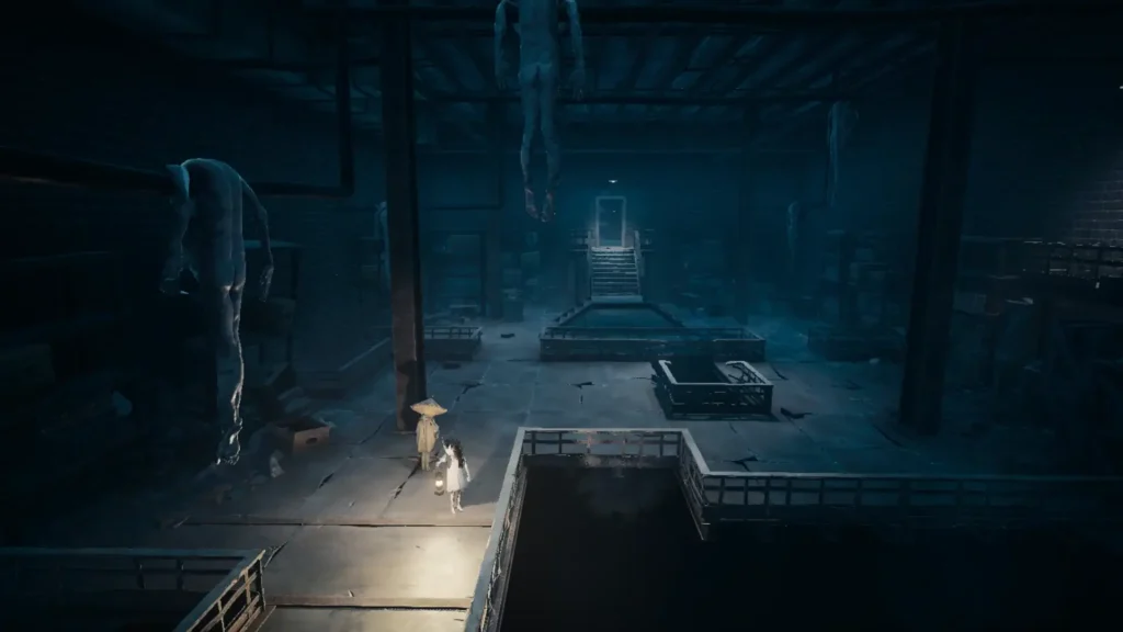 Everything is scaled hostile to your size: fixtures loom, shadows pool like ink, surfaces exude damp rot. It’s more oppressive than Little Nightmares ever felt.
